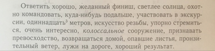 именные: желанный финиш, светлее солнца, одиннадцать метров, искусство резьбы, колоссальное сооружение, опавшие листья, пронзительный ветер. лужи на дороге, хороший результат