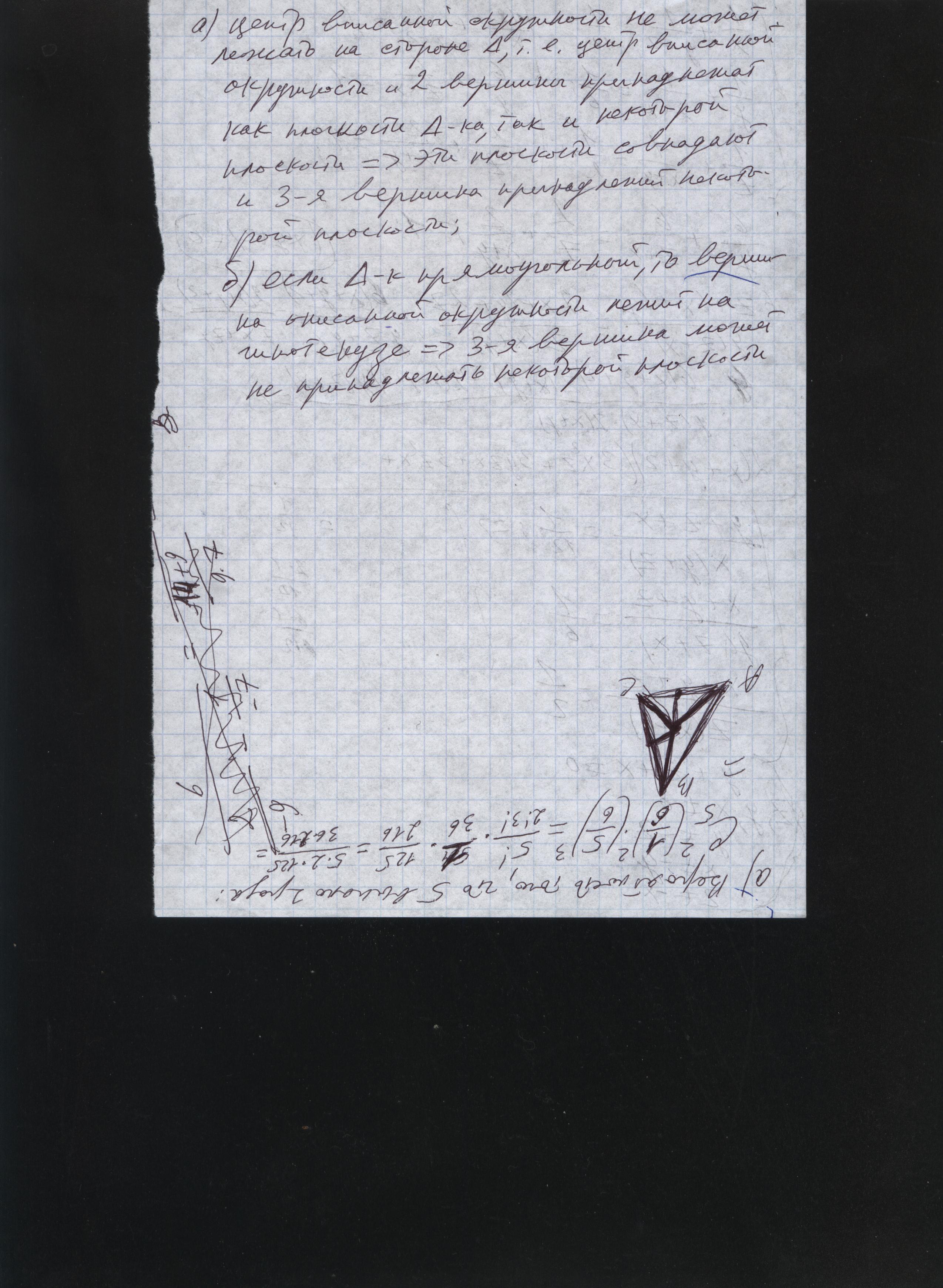 Дві вершини трикутника належать деякій площині. Чи належить цій площині третя вершина, якщо відомо, що цій площині належить: а) центр кола, вписаного в трикутник; б) центр кола, описаного навколо трикутника?