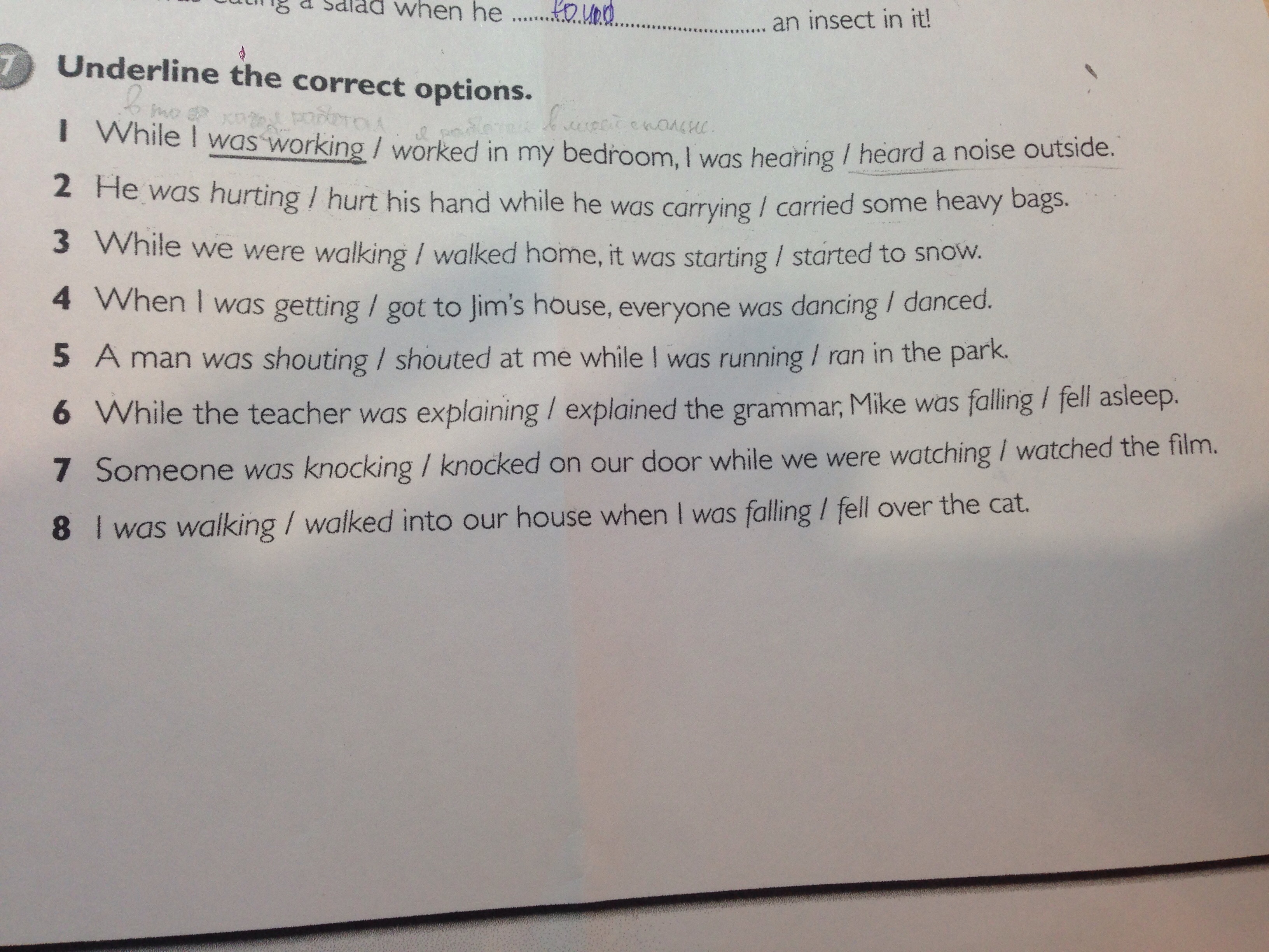 8)walked;was falling