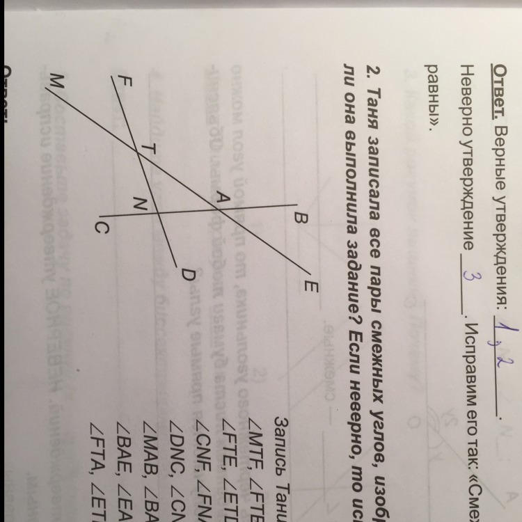 Запишите все пары смежных углов.