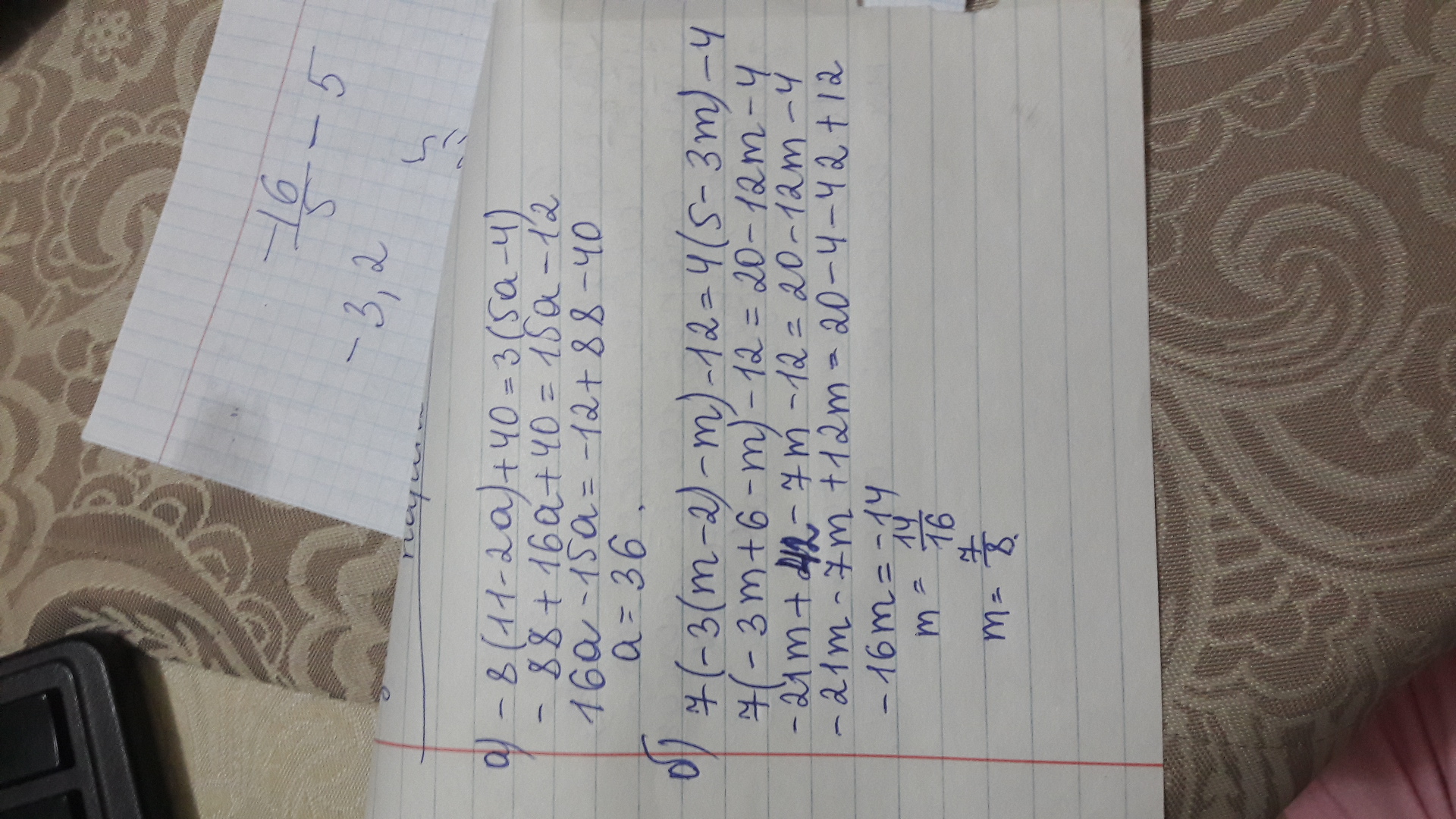 ПОЖАЛУЙСТА!!! СРОЧНО!!! Решите уравнения: а) - 8( 11 – 2а) + 40 = 3(5а – 4);