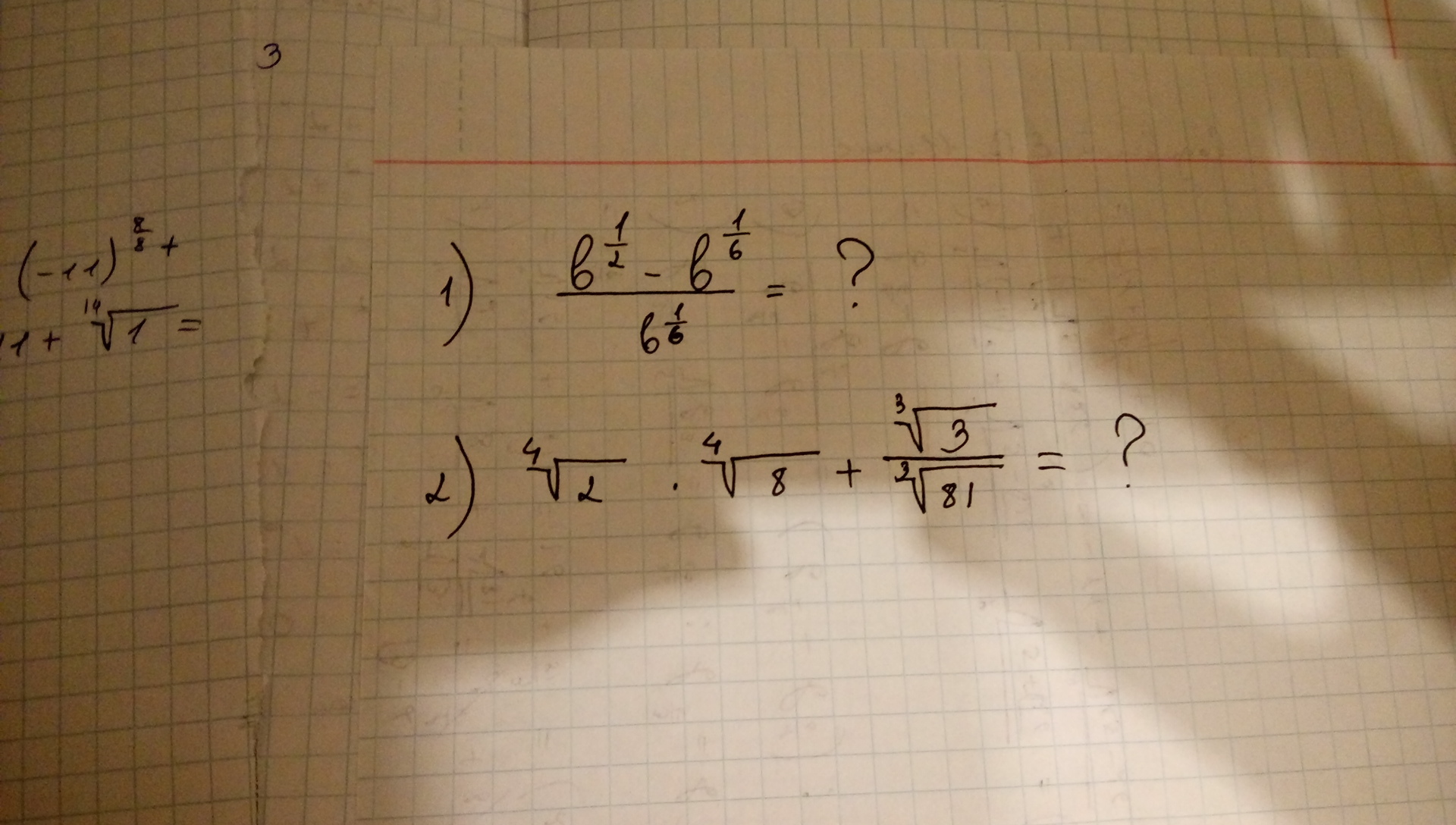(b^(1/2) -b^(1/6))/b^(1/6)=b^(1/2 -1/6) -b^(1/6 -1/6)=b^(3/6 -1/6) -b^0=b^(1/3) -1=∛b -1