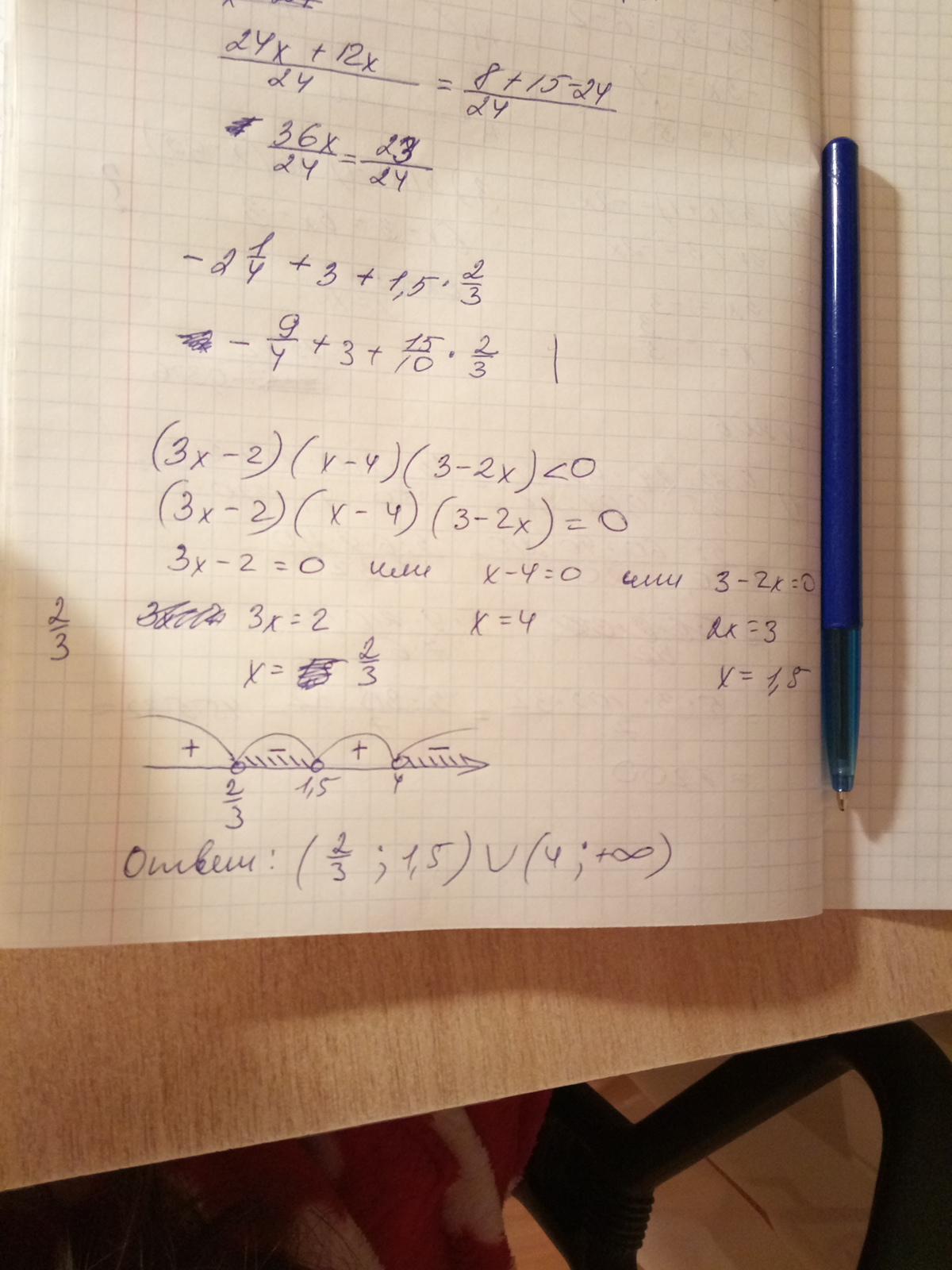 (3х-2)(х-4)(3-2х)<0 решение