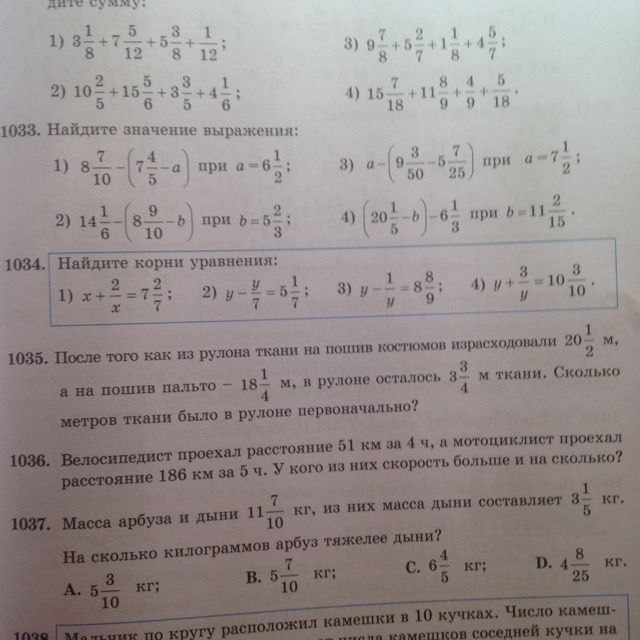 1034 номер. Уравнение 5 кл. Помогите, пожалуйста, решить, но через дискриминант НЕЛьзя!
