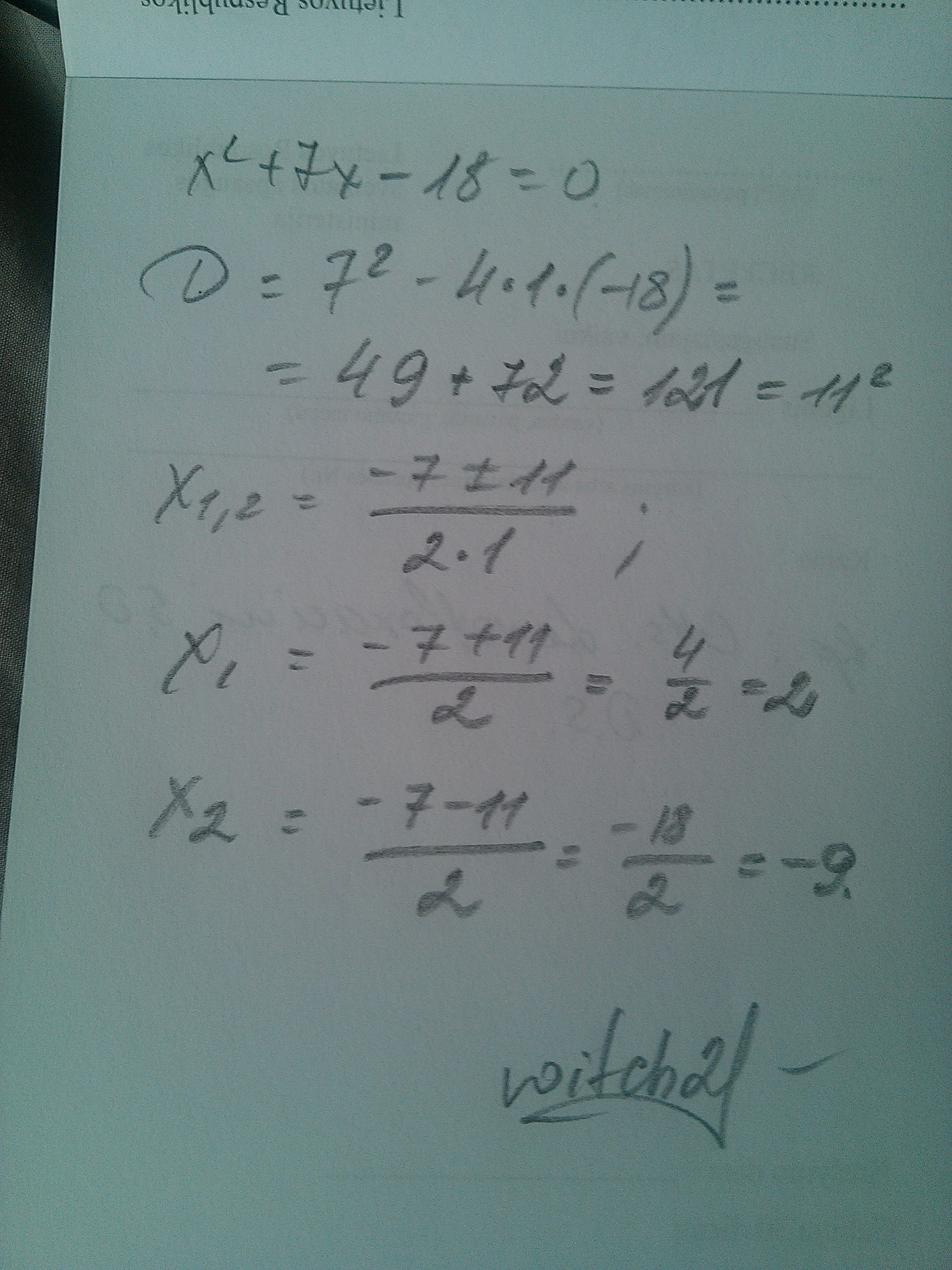x^2 + 7x -18 =0