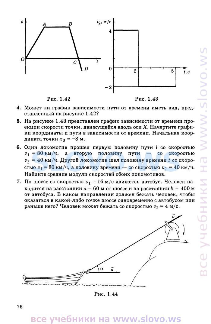 Лодку тянут за веревку с крутого берега с постоянной по модулю скоростью и. Найдите зависимость модуля скорости и лодки от угла а между веревкой и горизонтальным направлением (рис. 1.44).