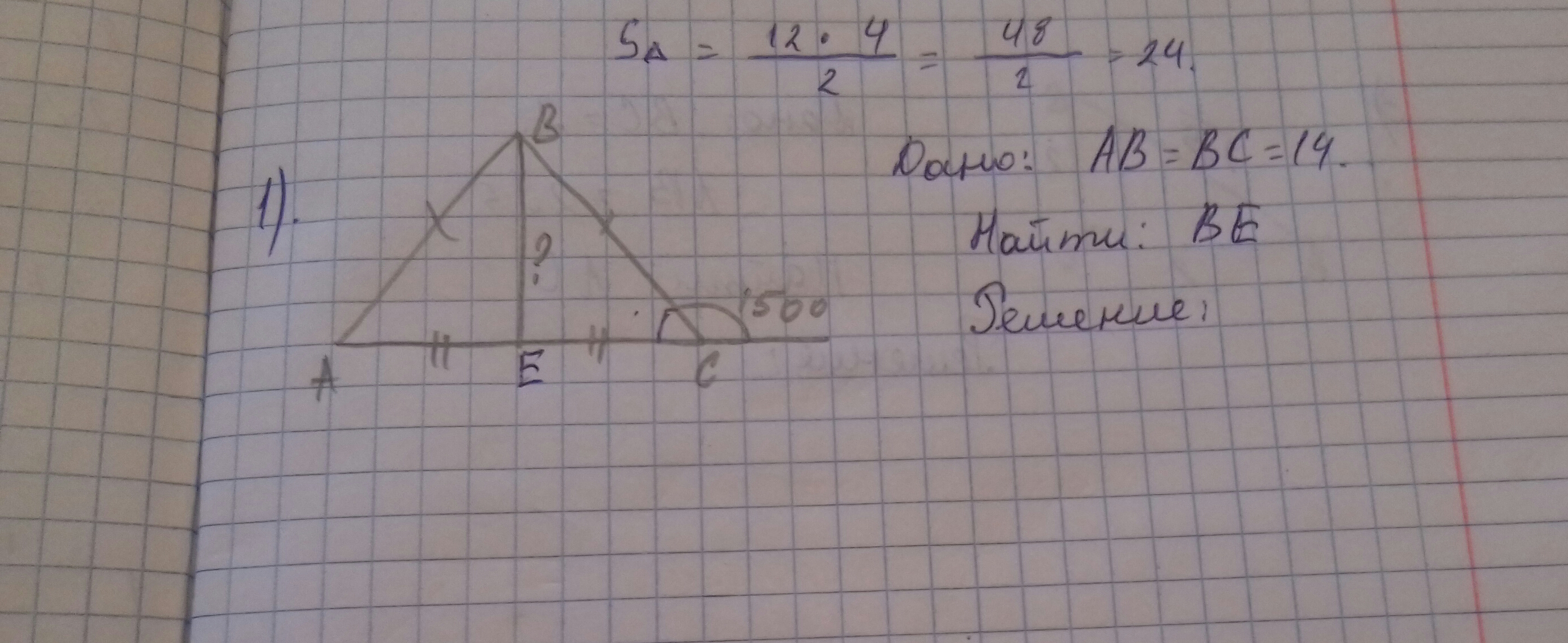 Отсюда следует, ВЕ = 14:2=7