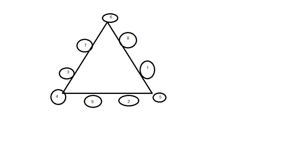 Четыре кружка с каждой стороны и числа не должны повторяться!