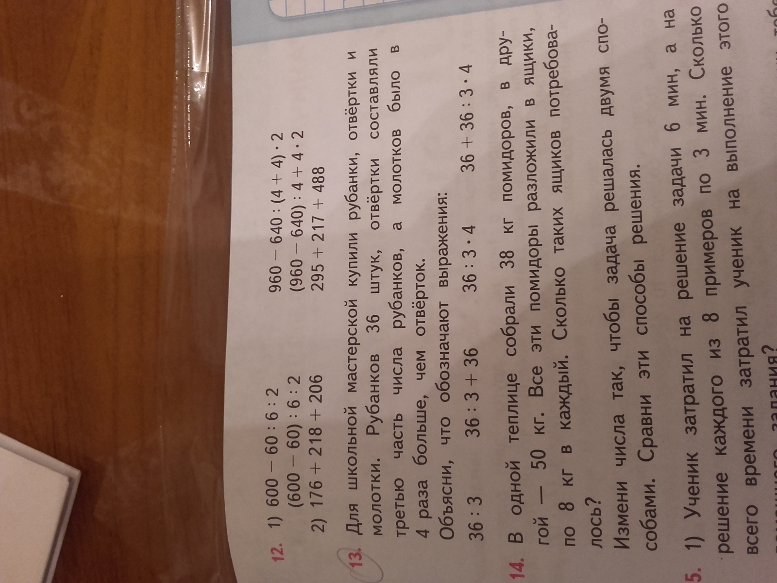 3 выражение (36:3*4) : узнаем сколько было молотков.