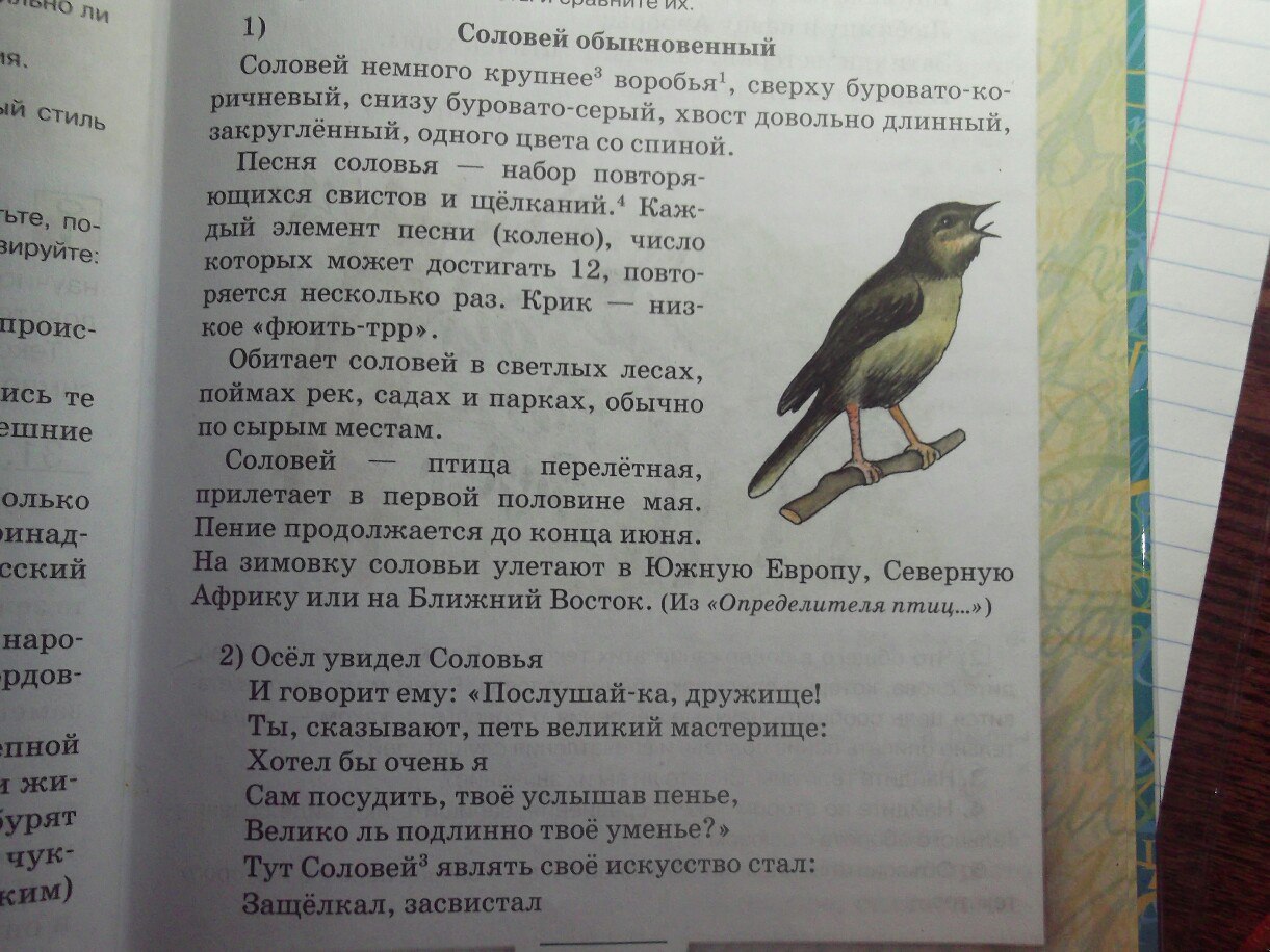 общие: то что везде рассказывается о соловье, а различия в том , что в1-ом научная точка зрения, а во 2-м стихотворное произведение где главный персонаж это собственно соловей . В 1-ом цель рассказать о соловье , а во 2-ом описать его пение.Термины(которые мне бросились в глаза) пойма , зимовка, томный, внимало.