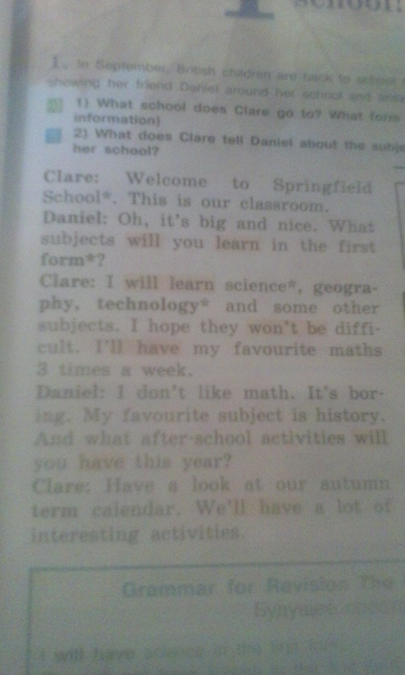 - Я не люблю математику. Это скучно. Мой любимы предмет - история. И какие послешкольные мероприятия ты будешь посещать?