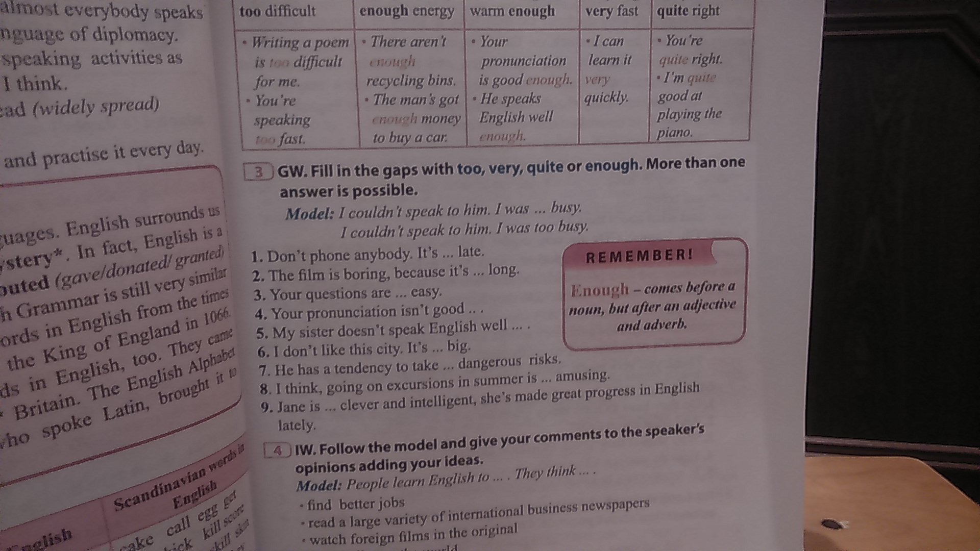easy. 4 isn`t good enough. 5 well enough. 6 It`s too big. 7 to take very dangerous risks. 8 in