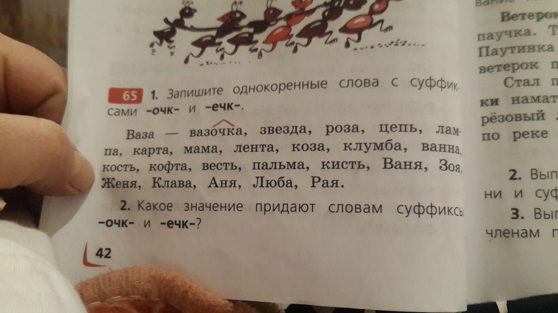 Звёздочка, розочка, цепочка, лампочка, карточка, мамочка, ленточка, козочка, клумбочка ванночка, косточка, кофточка, весточка, пальмочка, кистечка, Ванечка, Зоечка, Женечка, Клавочка, Анечка, Любочка, Раечка.