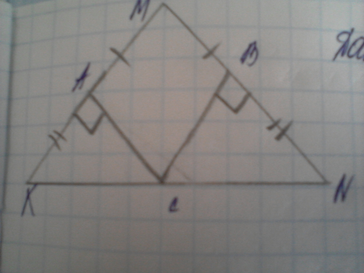 дано: треугольник KMN, AK=BN, AM=BM, CA перпендикулярно KM, CB перпендикулярно NM