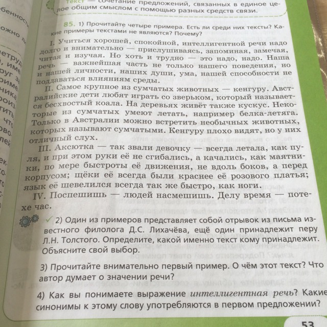 4 это не предложение а пословица. потом мне кажется филологу Лихачеву принадлежит 1 текст, а Толстому 3, 1 Текст нам раскрывает тему речи, автор этого текста показывает, насколько нам важна речь и зачем она нужна. ведь без речи никуда. Интеллигентная речь мне кажется это такая речь которая показывает интеллигенцию человека, то есть показывает его воспитание. а синонимы этого слова из текста - хорошая, спокойная)