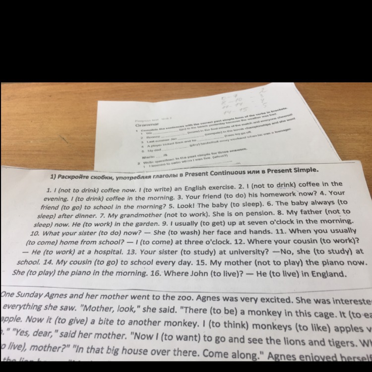 1)I am not drinking coffee now.I'm writing an English exercise.2)I do not drink in the evening.I drink coffee in the morning.3)Your friend doing his homework now(вообще, правильная постановка вопроса: Is your friend doing homework now?)4)Your friend go to school in the morning?(аналогично, только does)5)The baby is sleeping6)sleeps 7)doesn't work. 8) is not sleeping. He is working 9)get up 10)doing(правильная постановка: what is your sister doing now?) is washing 11)come; come 12)where does your cousin work?; works 13)study (does your sister); studies 14)goes 15)is not playing; plays 16) where does John live? lives