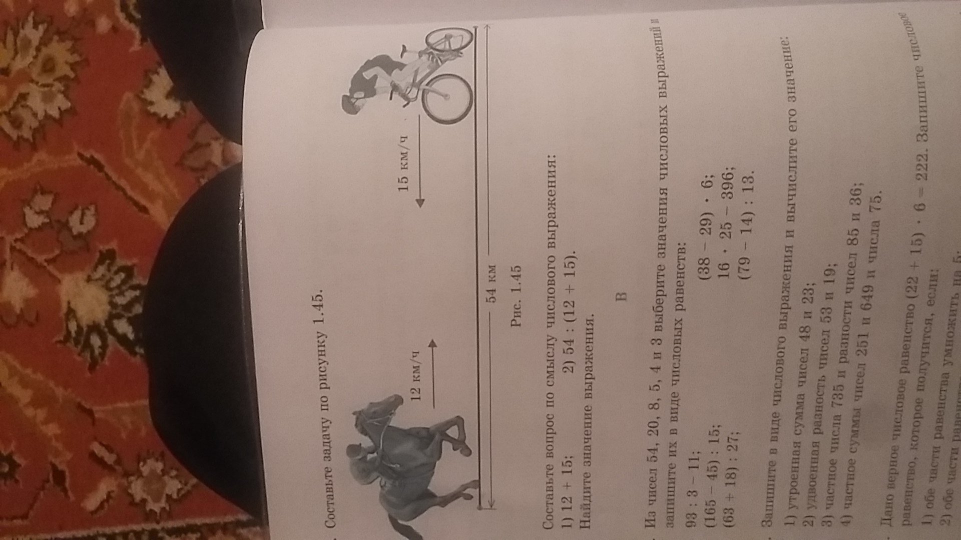 2)время сближения (54:(12+15)=2)