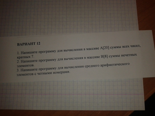 1) Напишите программу для вычисления в массиве А[20] суммы всех чисел, кратных 7.