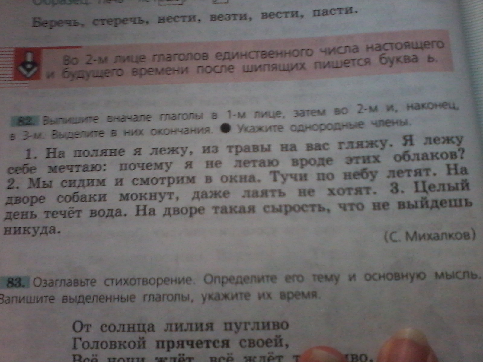 1:лежу,гляжу,лежу,мечтаю,не летаю,сидим,смотрим