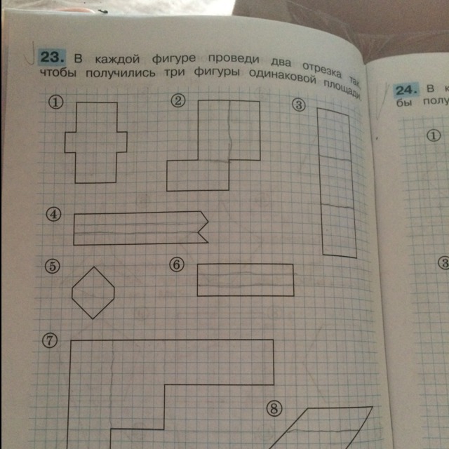 5 рисунок там всё просто Сначала делишь их пополам ну проводишь линию потом справа проводишь ну чтобы получилось 3