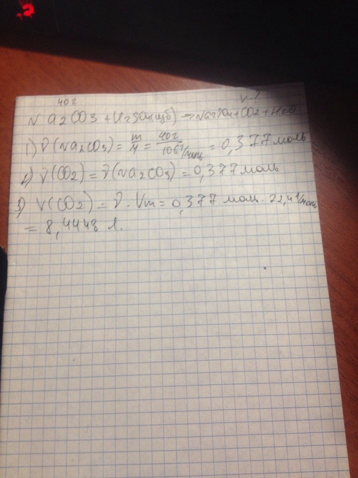 рассчитайте объём газа,который образуется при растворении 40г карбоната натрия в избытке раствора серуой кислоты.
