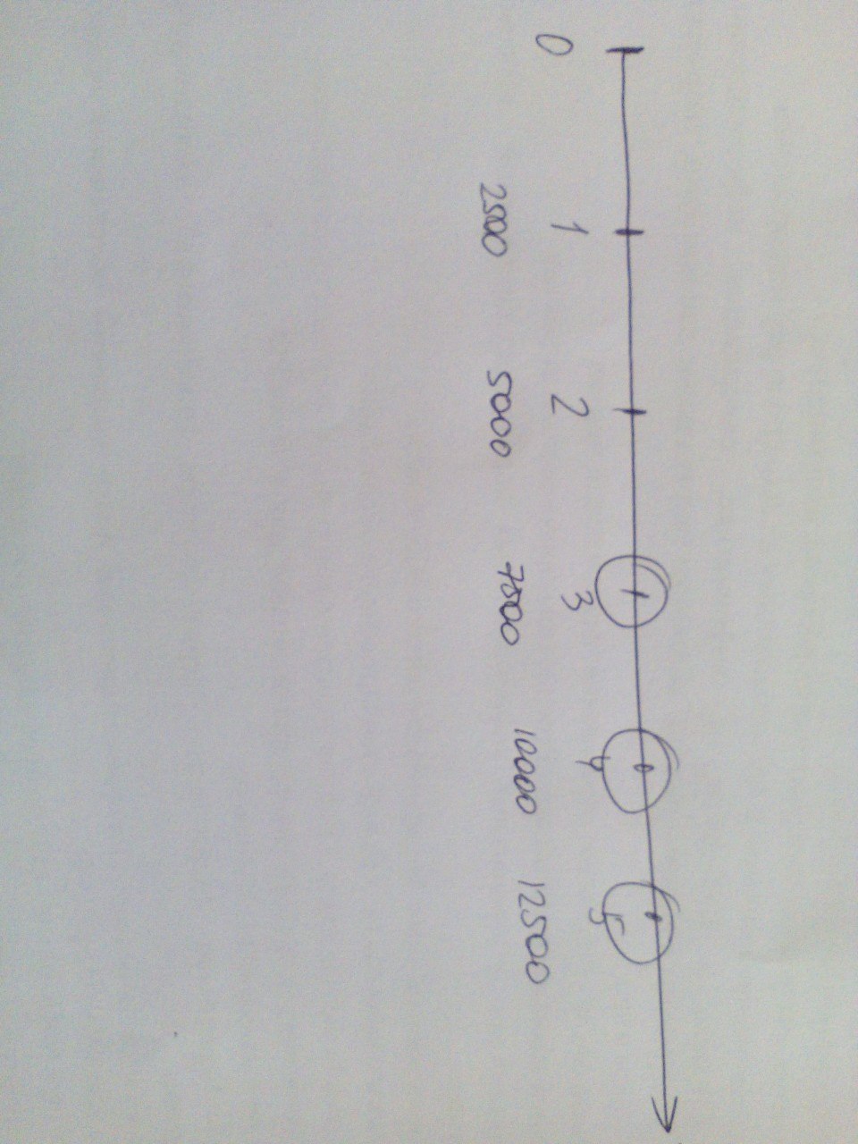 Начерти в тетради числовую ось,1 см которого соответствует 2500 единиц. Отметьте на данной оси точки ,координаты которых:7500,10000,12500