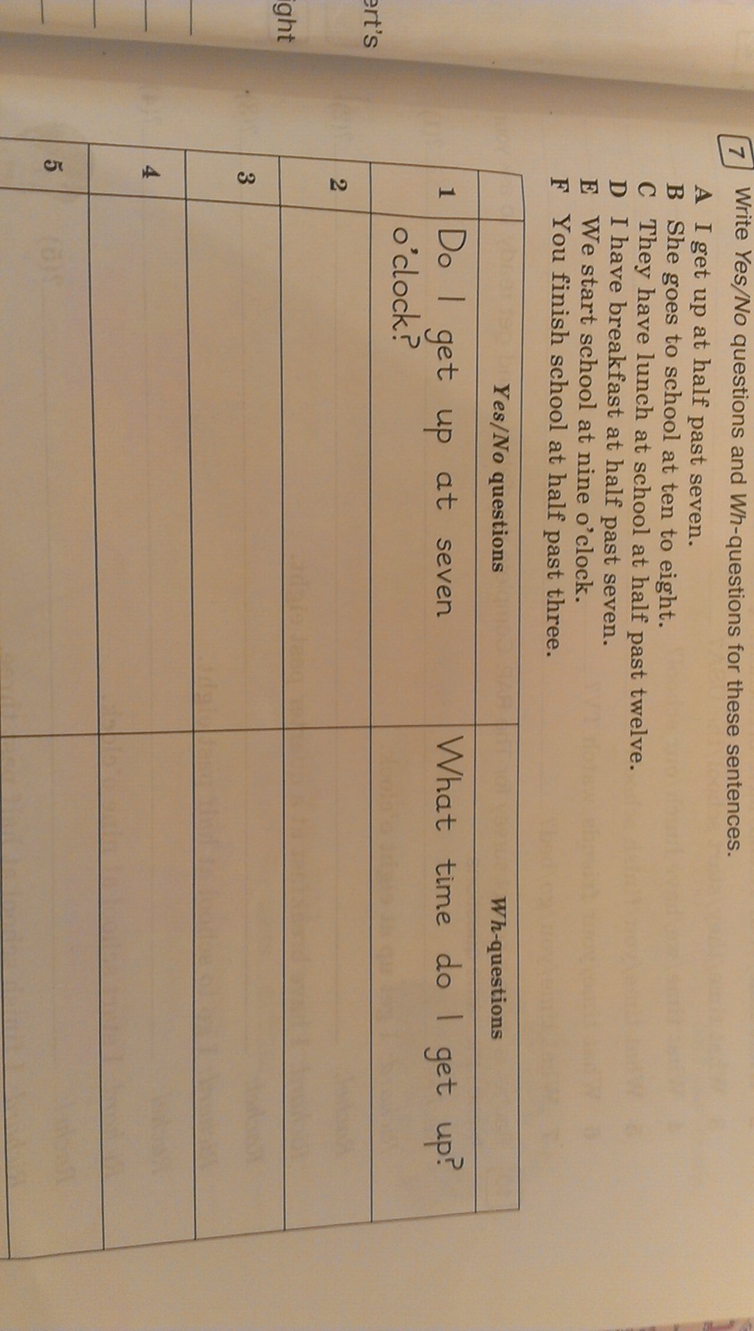 6 -Do you finish school at half past three?