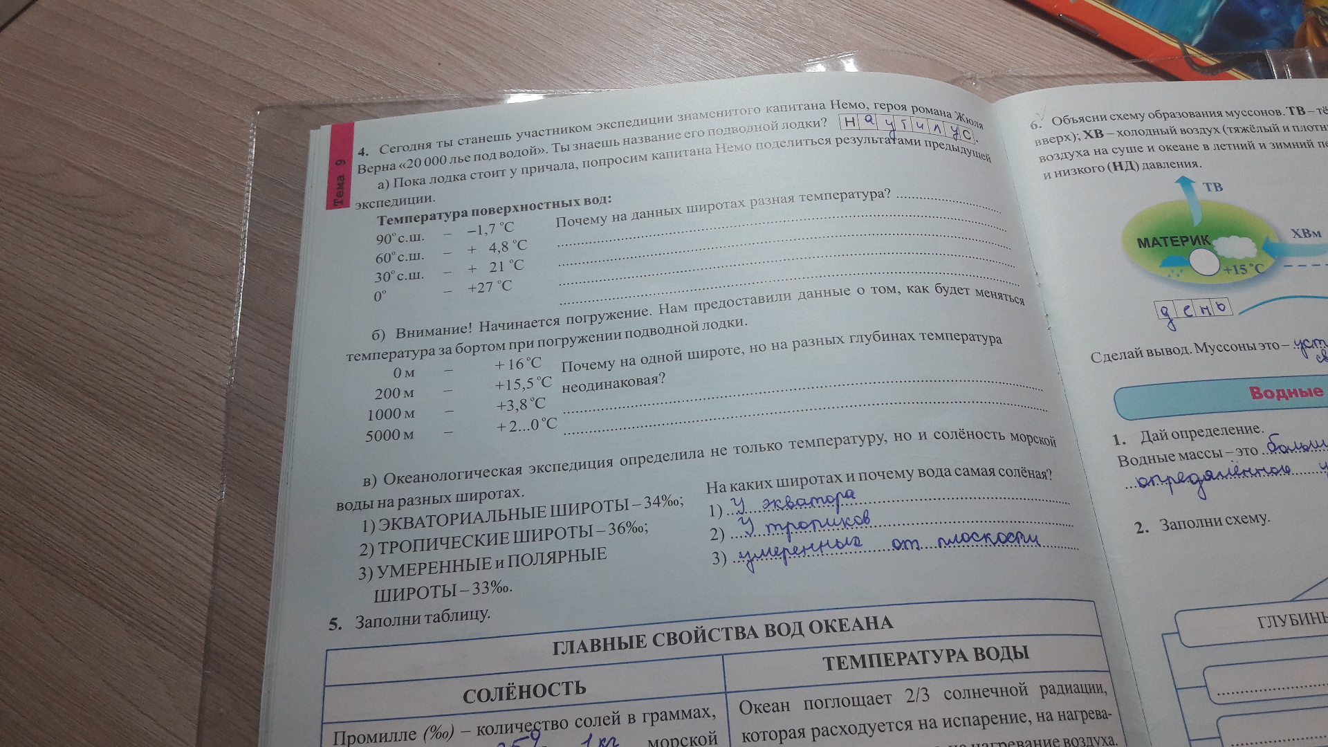 4а- потому что земля с полюсов вытянутая и немного наклонена поэтому солнечные лучи падают не равномерно. Все воды разной степени солености. Из за сном вода нагревается медленнее. 4б- потому что верхние слои воды нагреваются быстрее чем нижние.