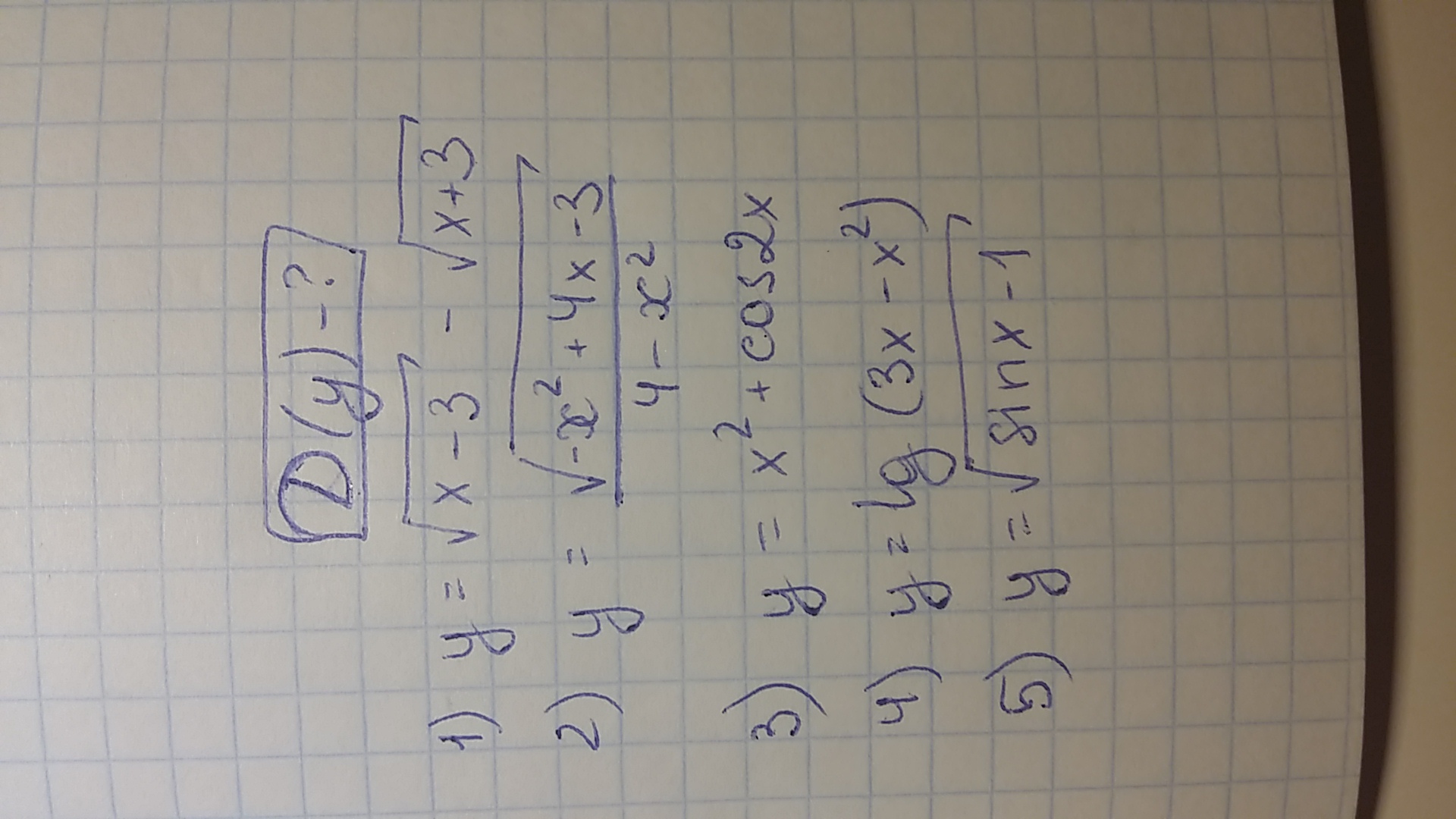 3) Косинус - функция ограниченная, принимает значения от -1 до +1. x^2 - парабола, ветви вверх, вершина в начале координат. При х=0 парабола дает 0, косинус - 1, в сумме 1. При х=1 парабола дает 1, а косинус - примерно -0,416, в сумме получается 0,584. Так что округляя, можно прикинуть, что функция принимает значения (0.58, +бесконечность)