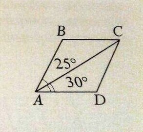 Диагональ AC параллелограмма ABCD образует с его сторонами углы, равные 25° и 30°. Найдите больший угол этого параллелограмма.