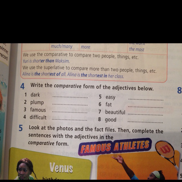 Нужно написать высшую ступень сравнения. Это делается путем добавления окончания -er. Например- short-shorter(в коротких словах где подряд согласная-гласная-согласная происходит удвоение:fat-fatter). В длинных словах мы добавляем more. Например- more beautiful. возможны и исключения. Например- good-better, bad-worse