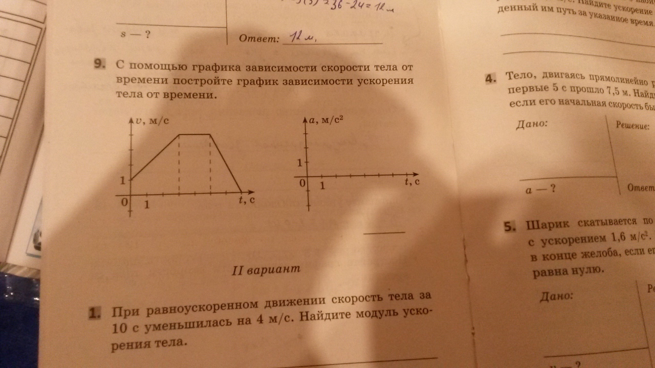с помощью графика зависимости скорости тела от времени постройте график зависимости ускорения тела от времени