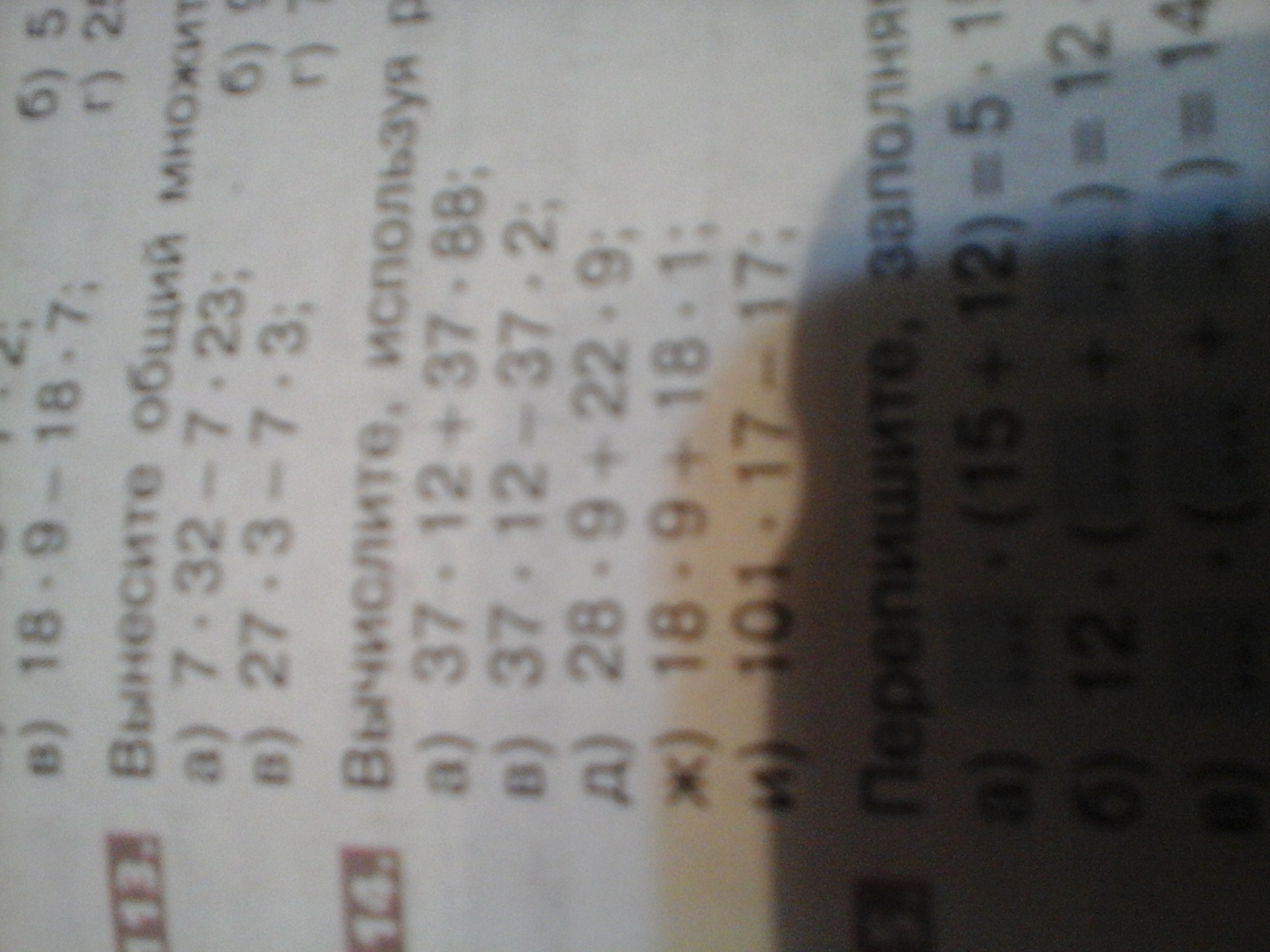 1)37*12+37*88=37*(12+88)=37*100=3700. 2)37*12-37*2=37*(12-2)=37*10=370. 3)28*9+22*9=9*(22+28)=9*50=450. 4)18*9+18*1=18*(9+1)=18*10=180. 5)101*17-17=17*(101-1)=17*100=1700