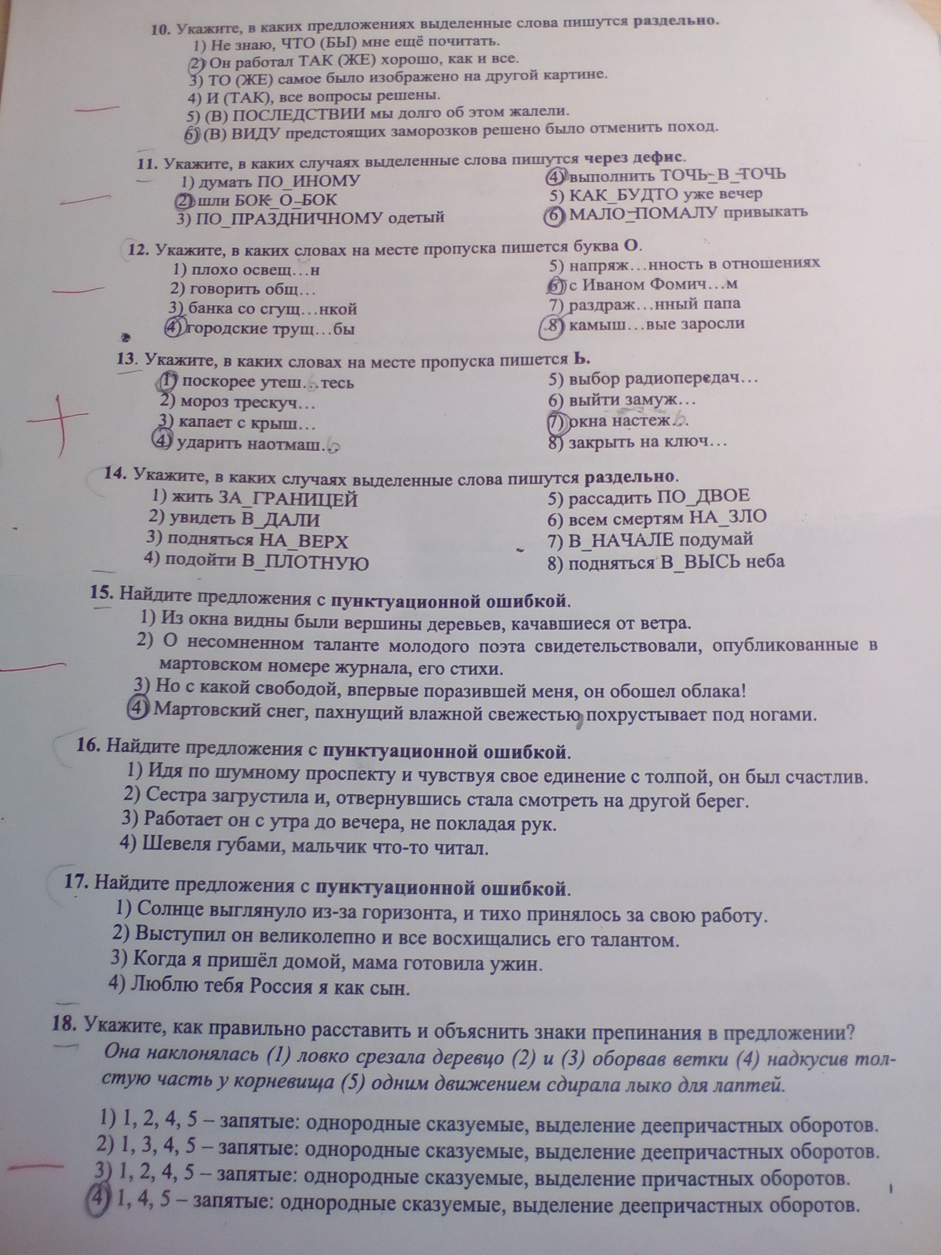 10) 1,2,3. 11) 1,3, 4, 6 12) 4, 8. 14) 1, 5, 8 15)2,4 16) 2,3. 17) 1,2. 18)2