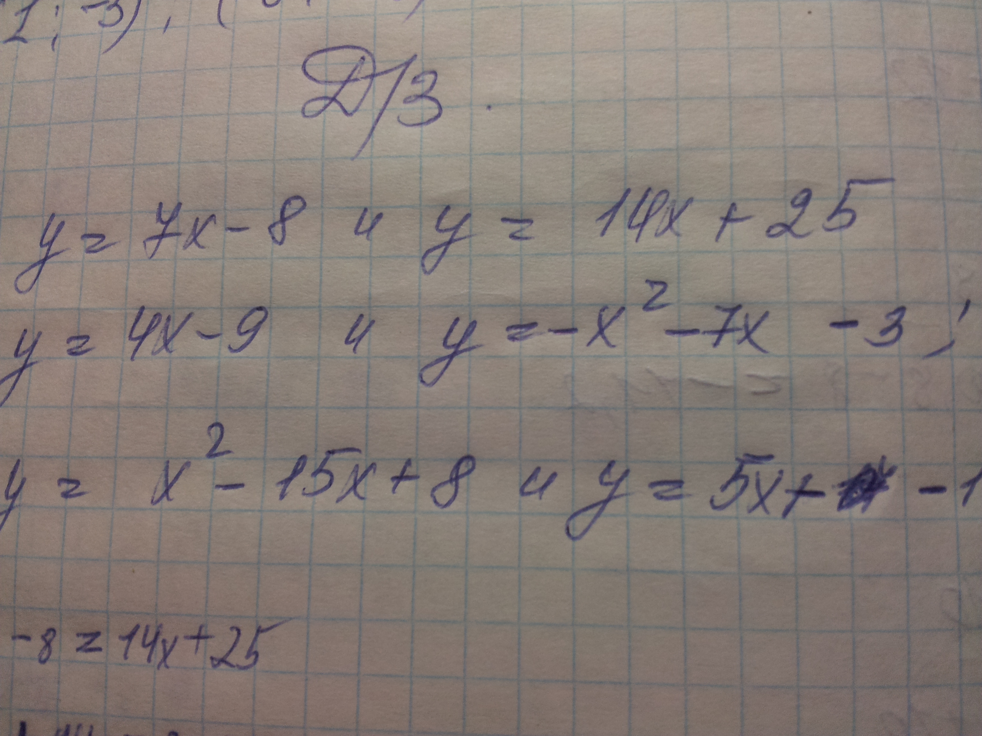 7x=-33; x=-33/7; y=7x-8=-33-8=-41