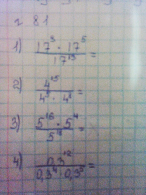 4) 0,3^12/0,3^4*0,3^5 = 0,3^12/0,3^9 = 0,3^3 = 0,027