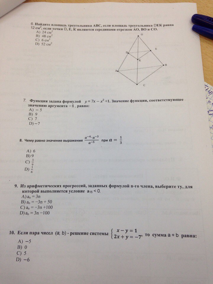 Молодой человек, правильным ответом в задании которое ты прислал является ответ : Д) -7