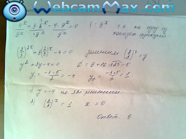 (4/9)^x + 3*(6/9)^x - 4*(9/9)^x = 0