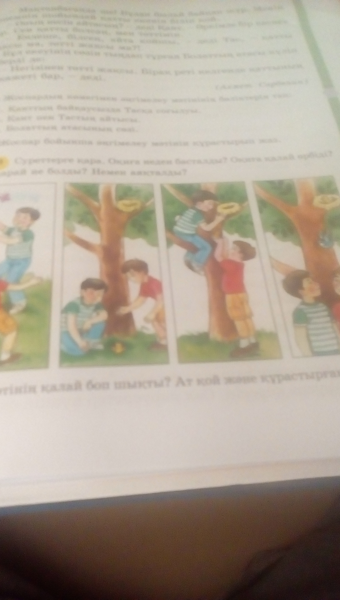 суреттерге кара.Окига неден басталды? Окига калай орбыды? Ары карай не болды? Немен аякталды?