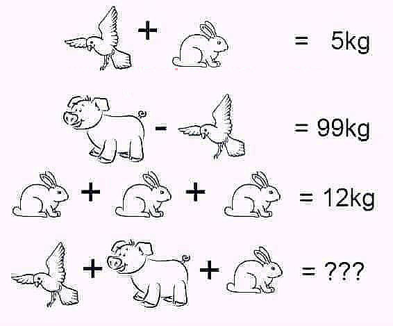 12 : 3 = 4 кг весит заяц