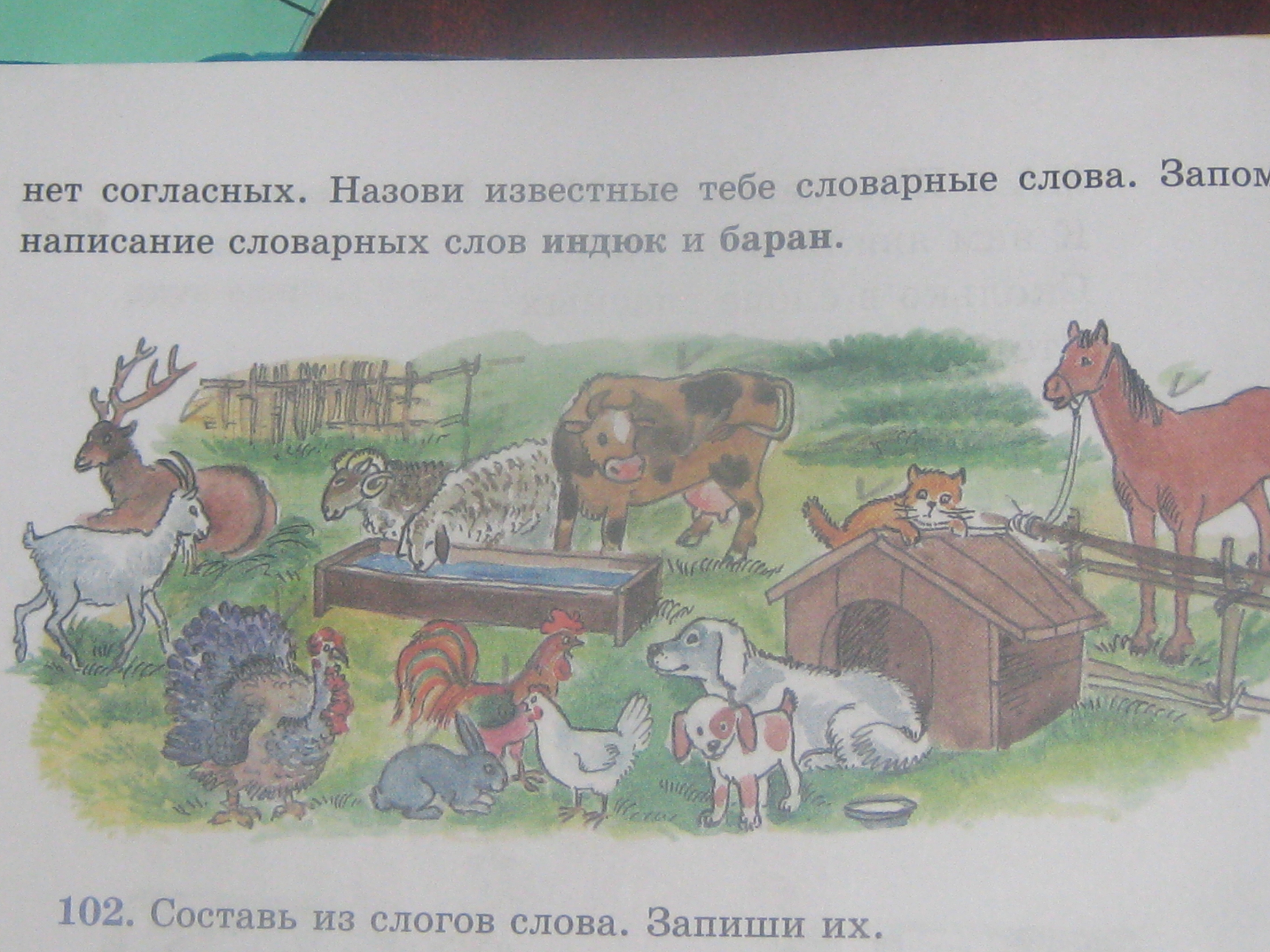 рассмотри рисунок. назови какие животные нарисованы. запиши. подчеркни слова в которых нет согласных.