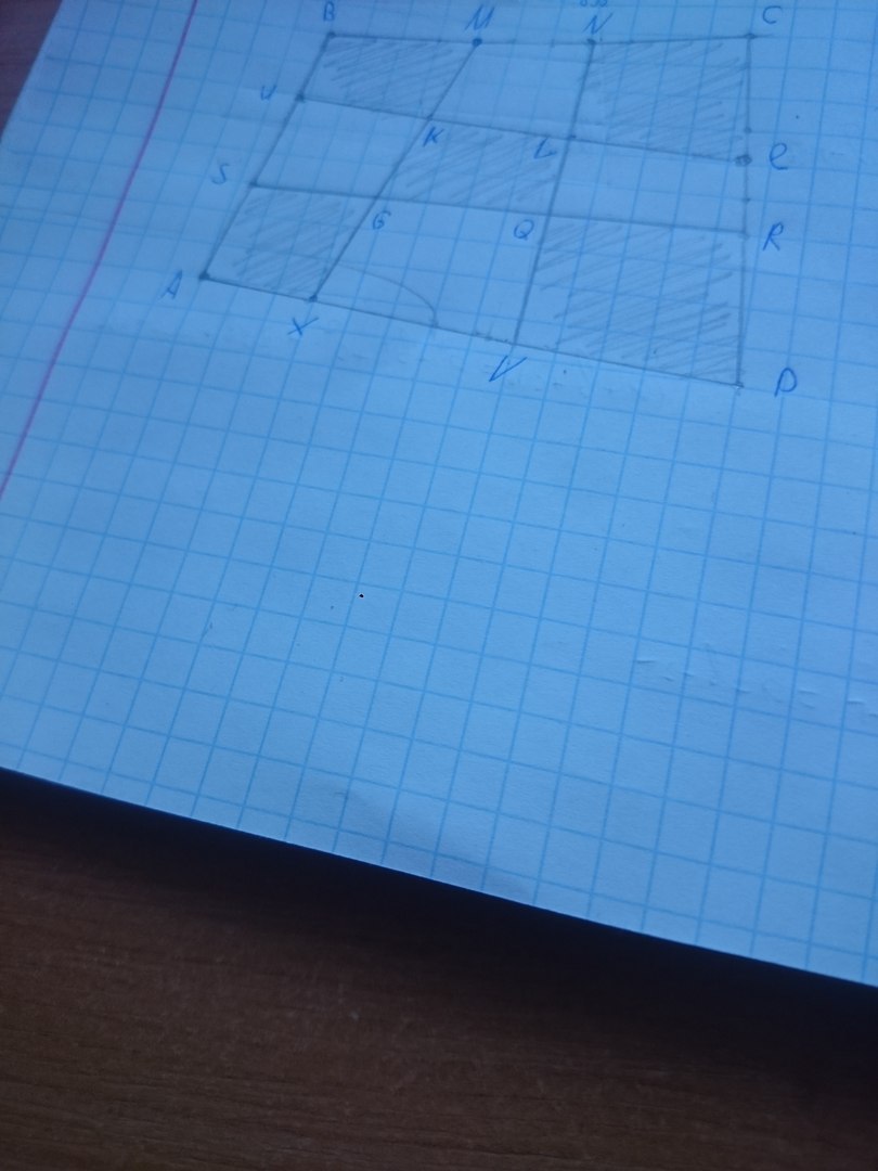 На каждой из сторон выпуклого четырехугольника отмечены две точки. Эти точки соединены отрезками так, как показано на рисунке. Известно, что в каждый из закрашенных четырехугольников можно вписать окружность. Докажите, что и в исходный четырехугольник можно вписать окружность.