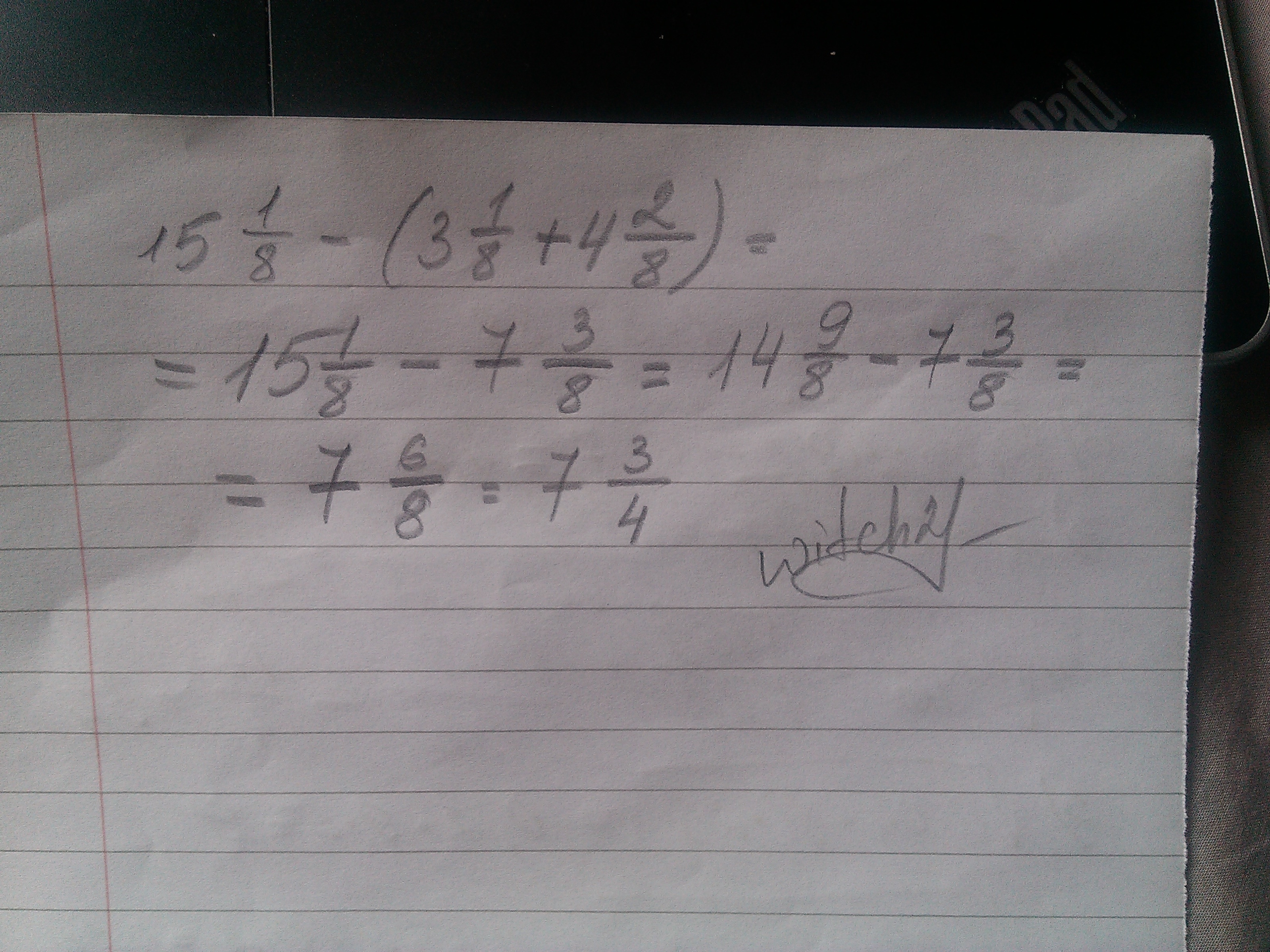 2) 15 1/8-59/8=121/8-59/8=61/8=7 5/8