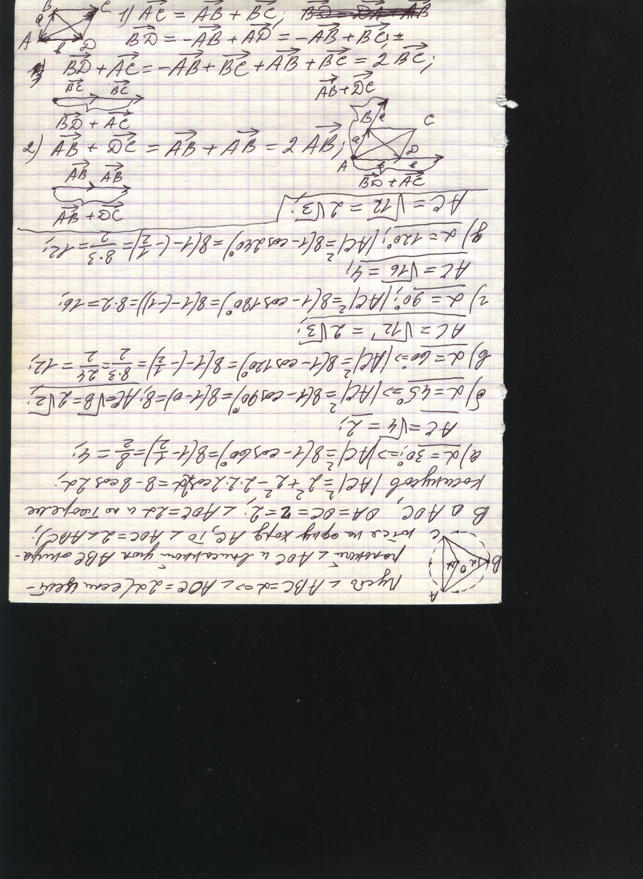 3) →АD+→СВ=→АD - →ВС=→АD - →AD=0