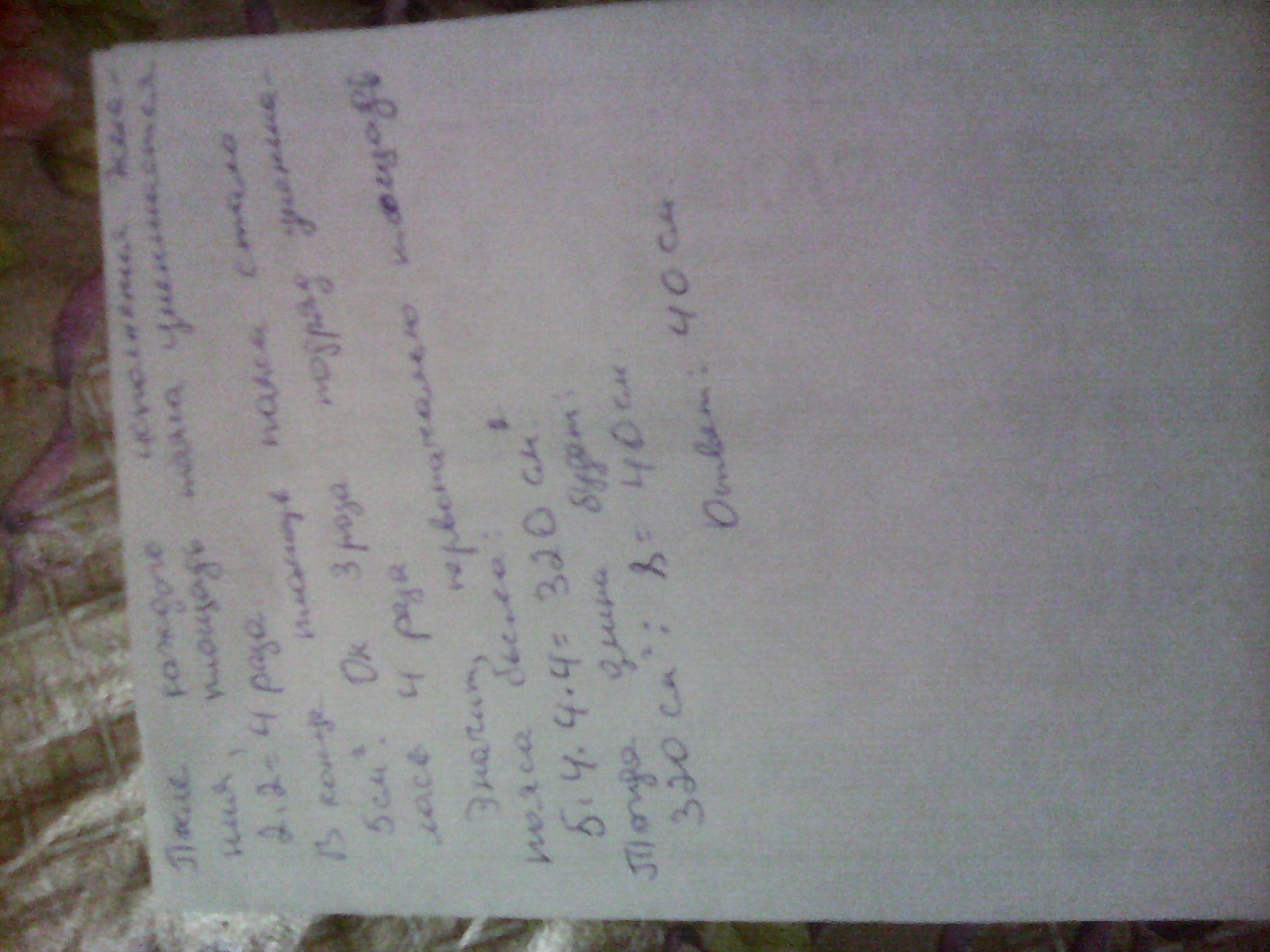 волшебный пояс исполняющий желания хозяина уменьшается в 2 раза в длину и в 2 раза в ширину после каждого испоненного желания.После исполнения 3-х желаний площадь пояса стала 5см в квадрате.