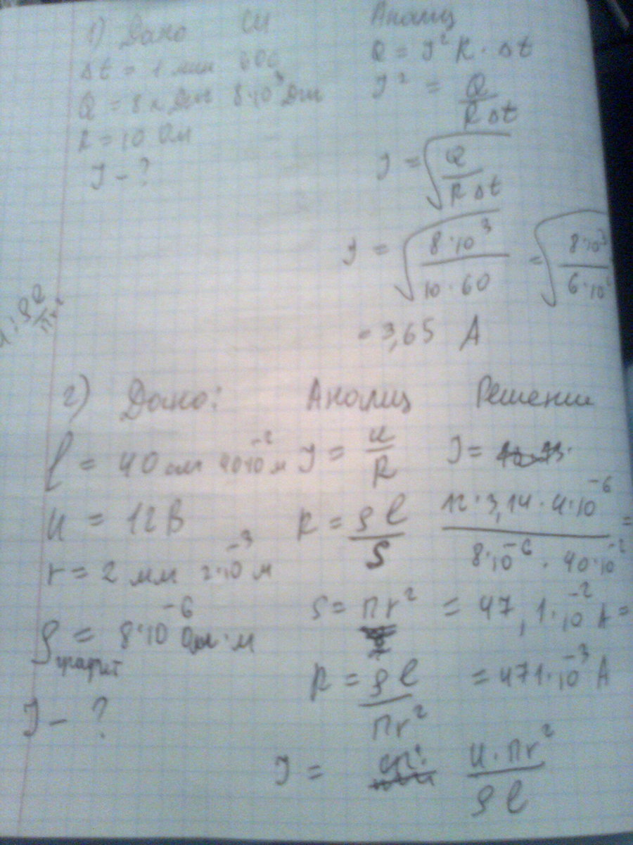 1)количество теплоты выделяемое за промежуток времени △t=1.0 мин на резисторе с током Q=8,0 кДЖ. Определить силу тока I в резисторе если его сопротивление R=10 Oм.
