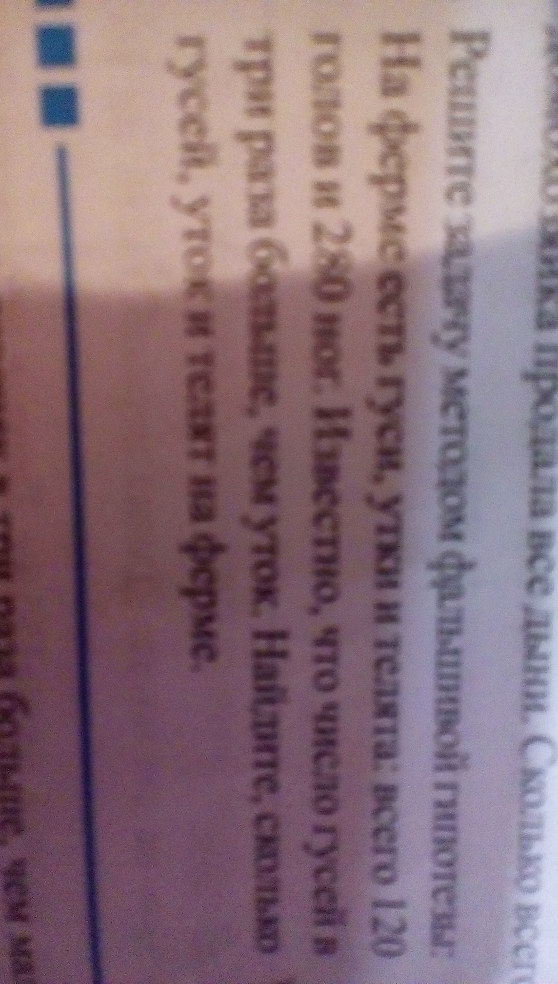 Пусть х - количество уток, 3х - количество гусей, у- количество телят