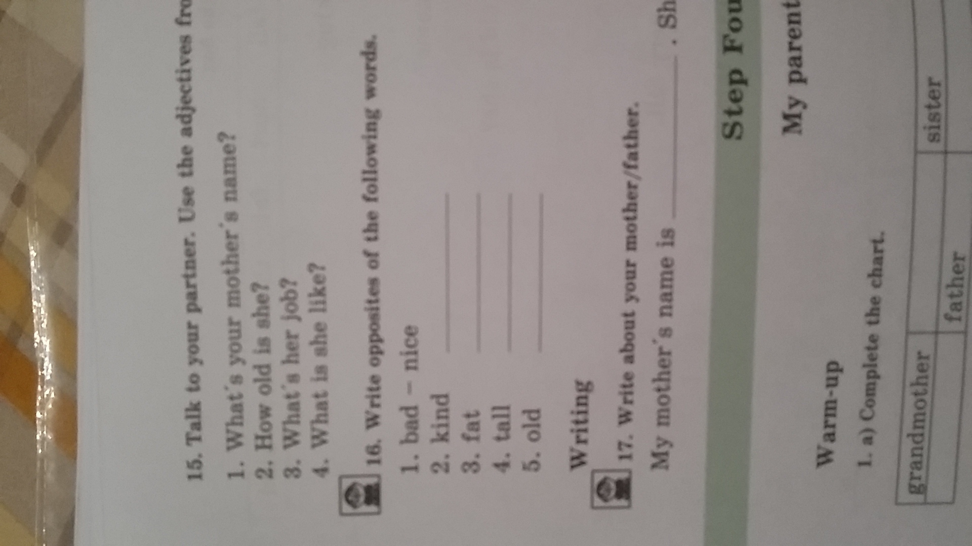kind - angry, fat - slim, tall - small, old - new.