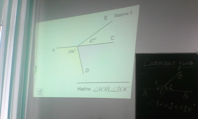 2) Аналогично ∠AOD и ∠DOC = 180°, то ∠DOC = 180° - 106° = 74°