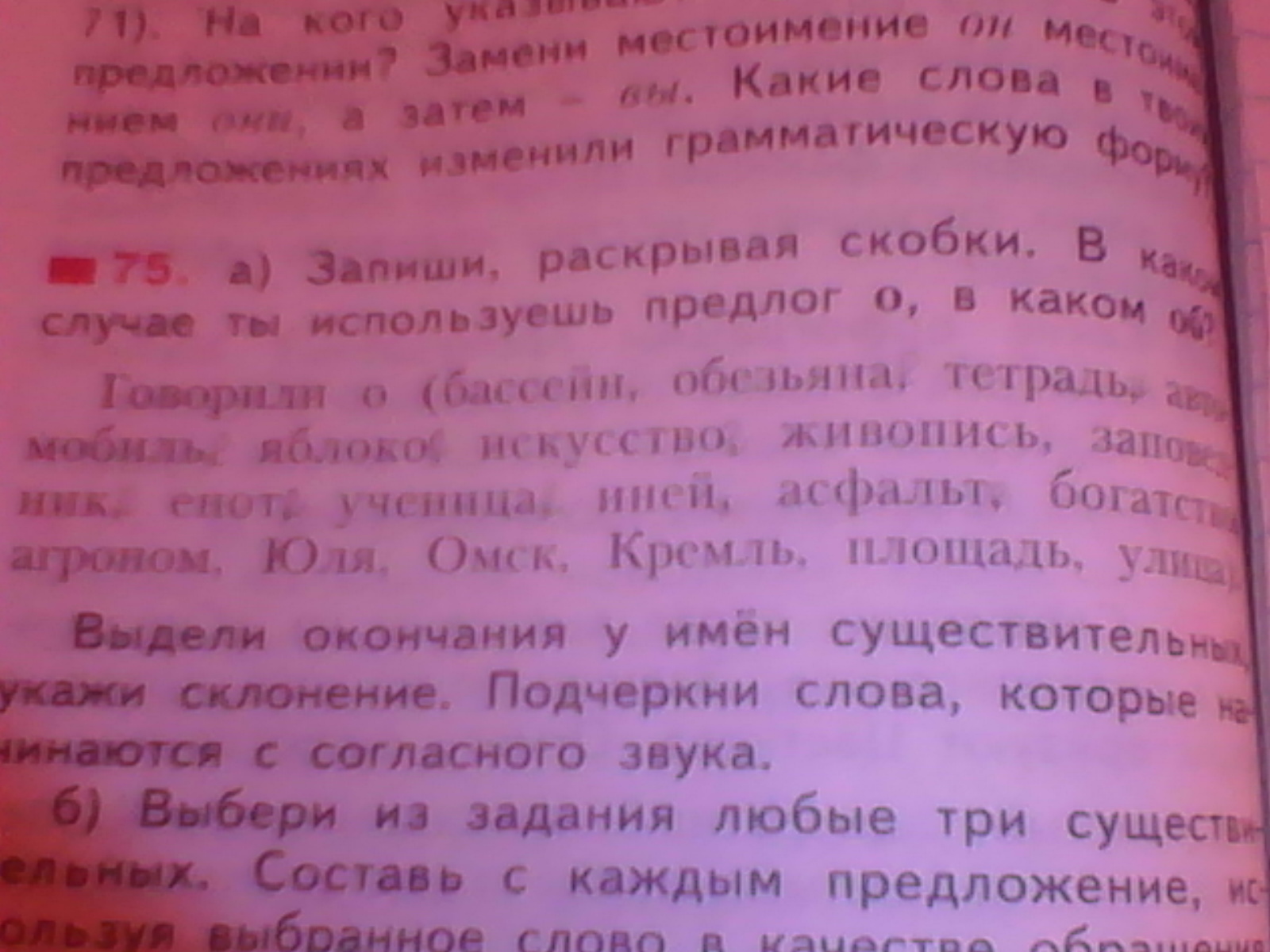Говорили о бассейне/об обезьяне/о тетради/ об автомобили/об я блоке/ об искусстве/о живописи/ о заповеднике/об еноте/ об ученице/ об инее/ об асфальте/о богатстве/ об агрономе/ о Юле/ о Омске/ о Кремле/ о площади/ об улице